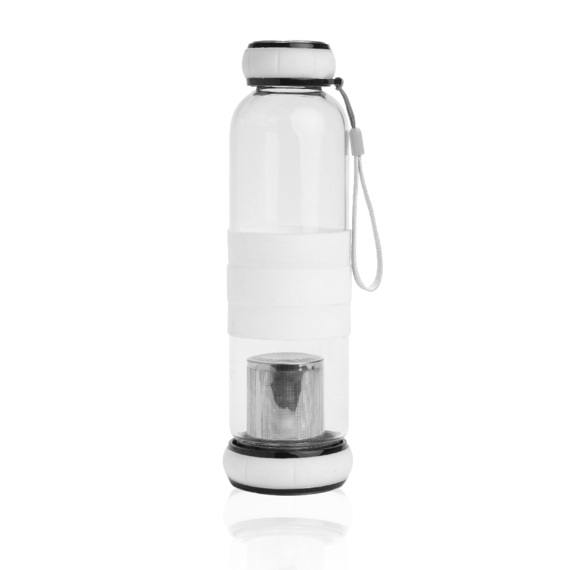 לואיזה – בקבוק זכוכית לחליטת תה עם רשת צפופה עשויה נירוסטה וחבק סיליקון 500 מ"ל
